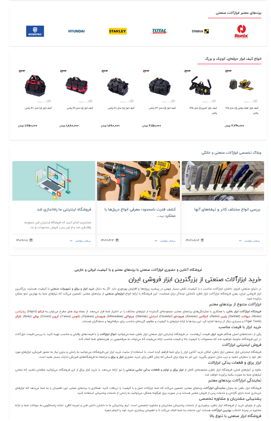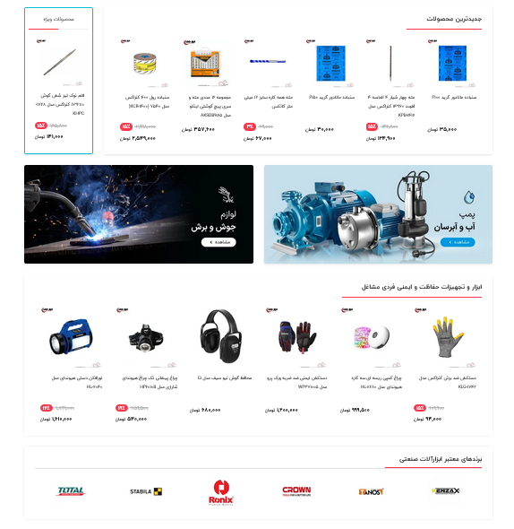 طراحی فروشگاه آنلاین ابزارآلات باطن